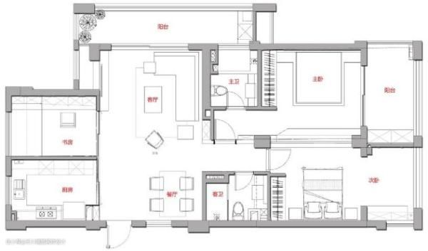 装修布置图,针对户型问题作出整改: