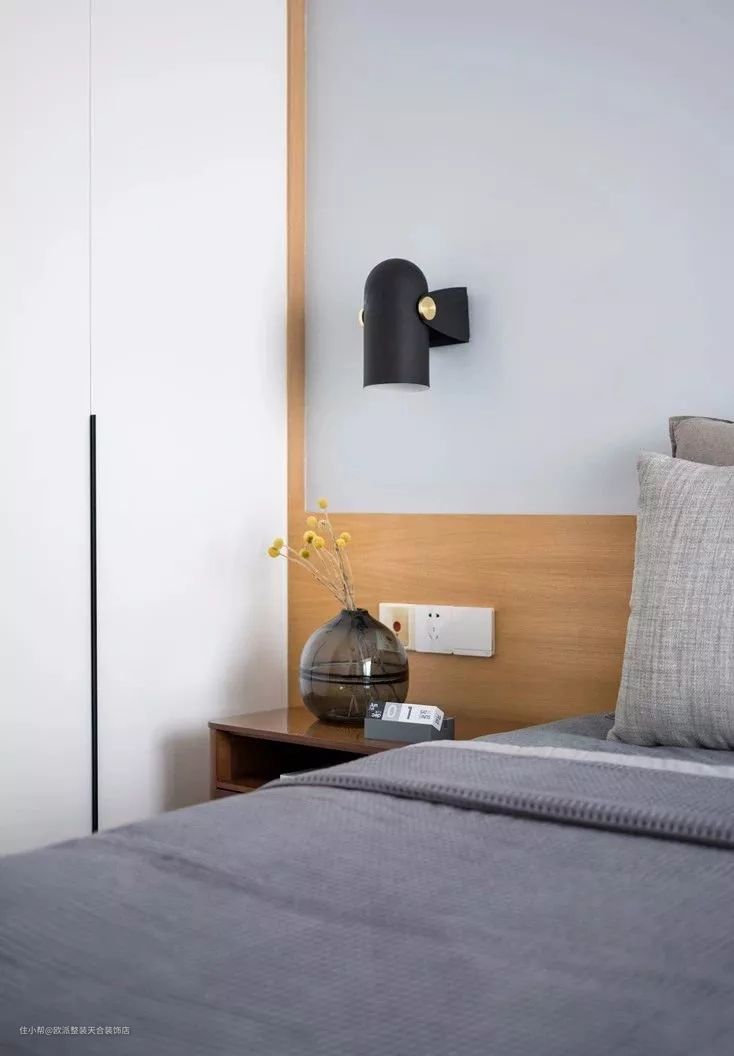 ▲ 灰色系的床品将气质沉淀,惬意舒适。