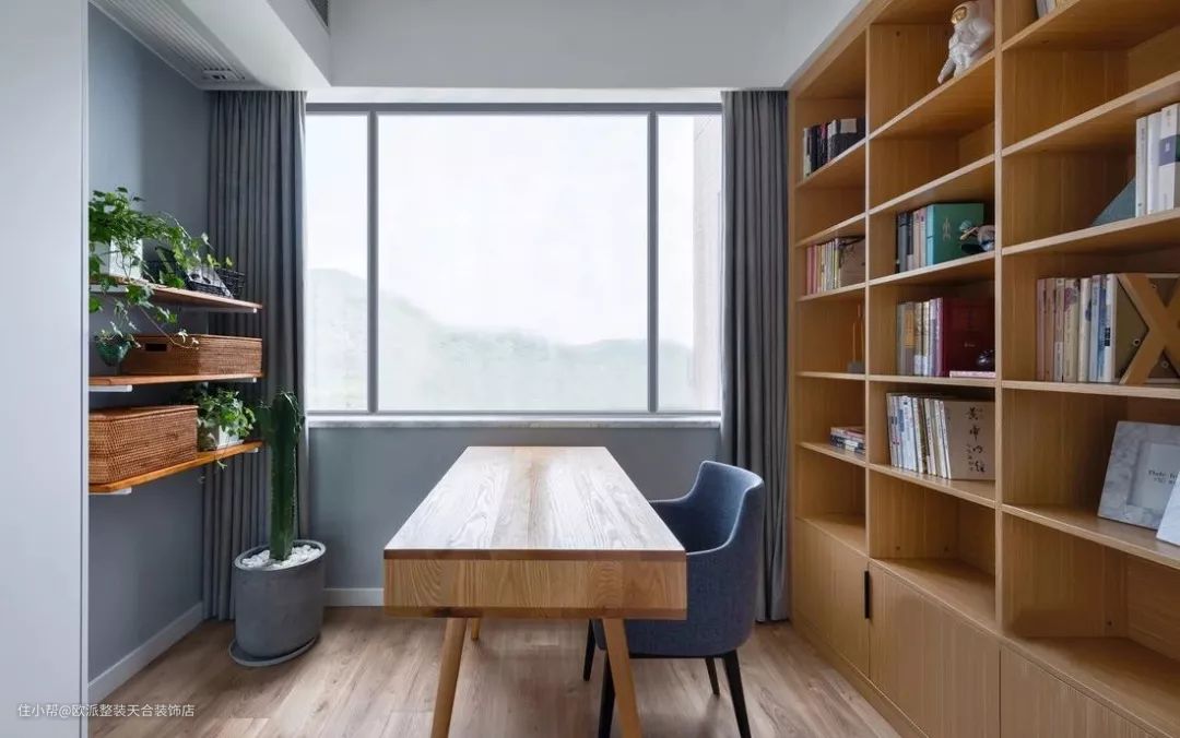▲ 书房有大大的窗户,工作累了可以倚着窗发发呆,放松一下。一整面墙的书柜满足收纳需求。