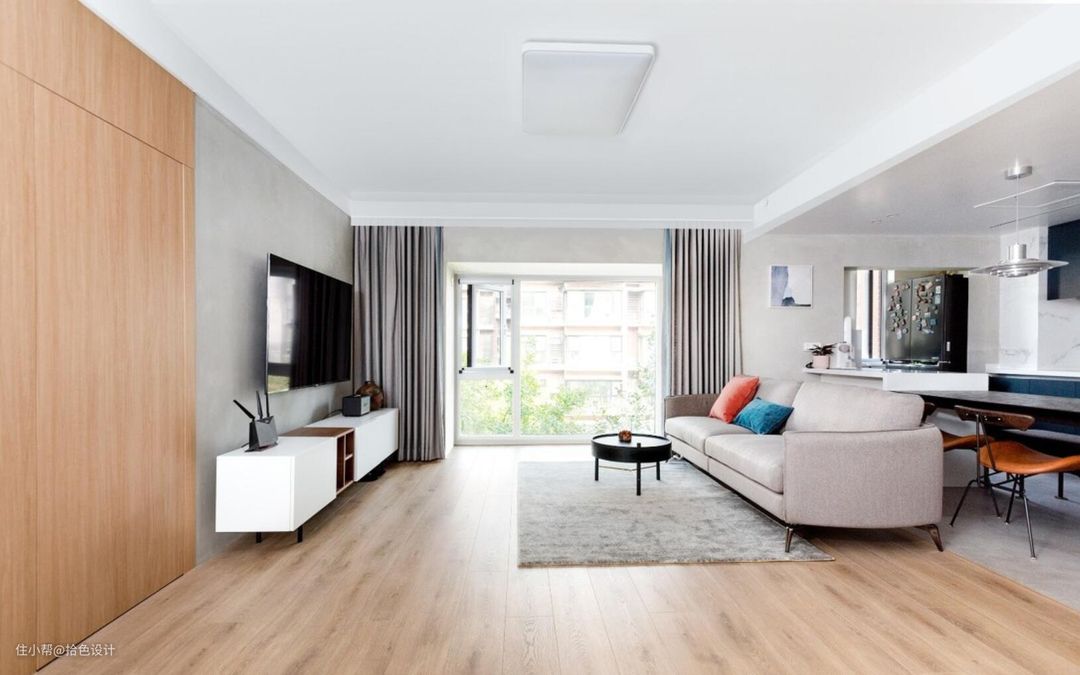 不过本期带来的这套案例,不仅巧妙地解决了这个问题,还让入户自然形成了一块玄关区,从而让空间区域划分更加合理舒适。同时,过道的使用面积也很好地利用了起来。因此,若有朋友家的户型与其类似,完全可以来借鉴参考,真的太巧妙了。