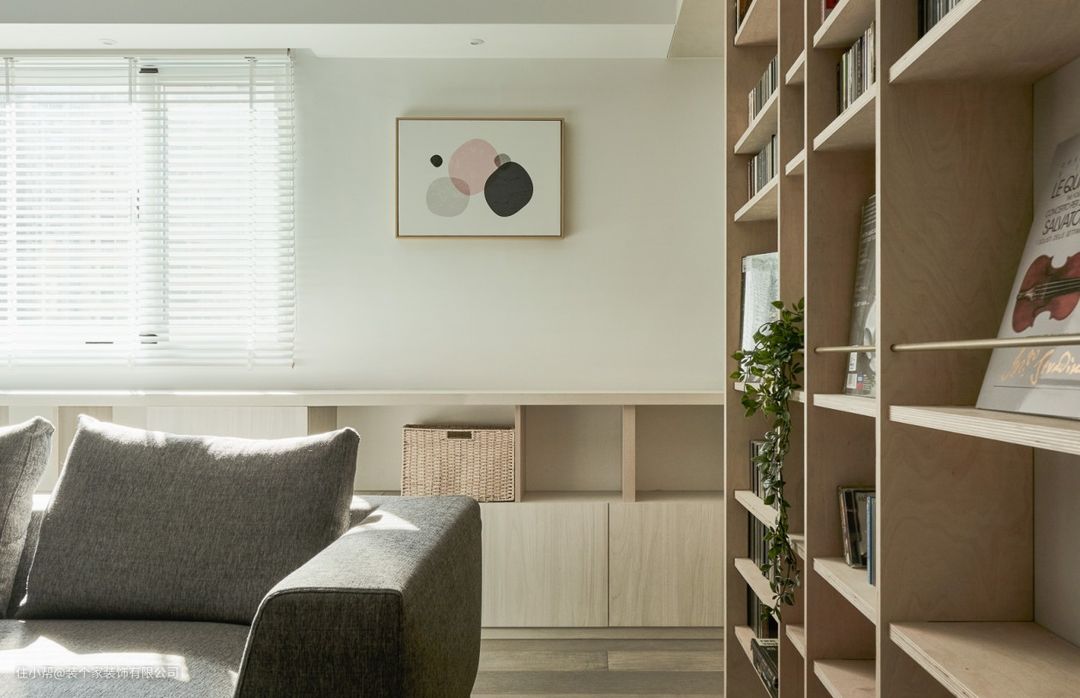 由思维设计设计的藏物之家,因整体空间并非宽裕,除了借用壁面发展的可能性,「延伸」的手法遍布在空间之中。设计师 Emily将柜体一路展延进旁侧的房间,透过相同的木色材质,拉长展示柜体的纵深,放大视觉上的连贯性,也弱化「门」阻隔的印象。