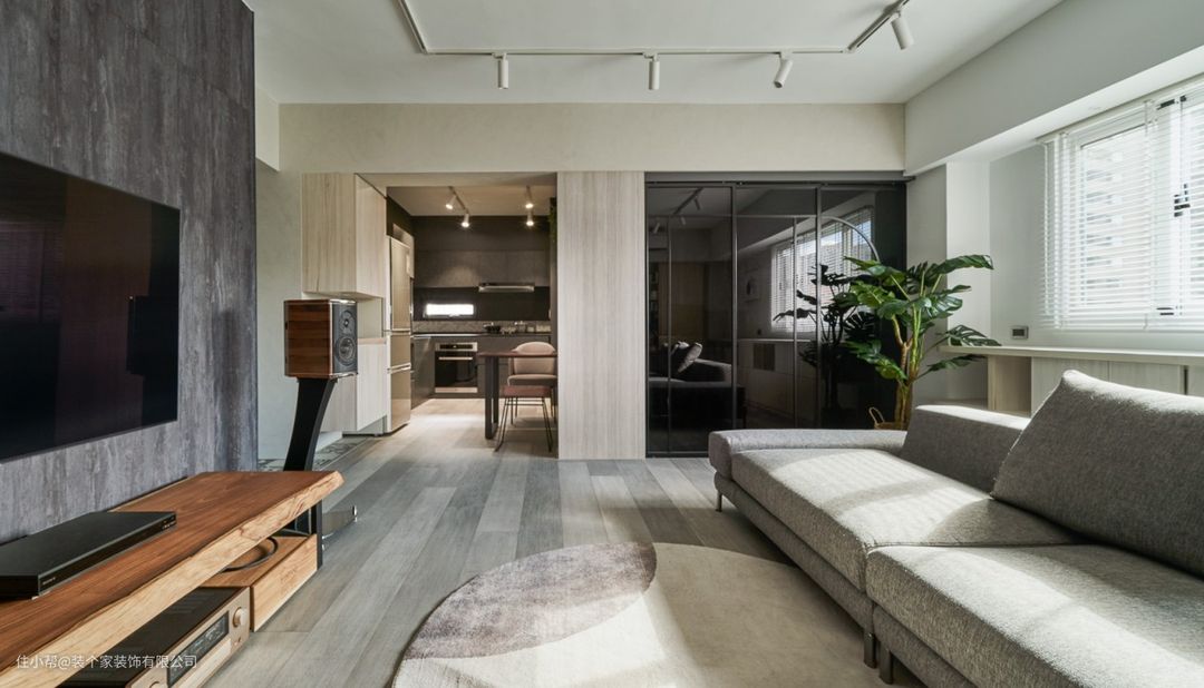 灵魂需要重心,也需要透过暗面释放。公共空间除了大量的木质与温润的白色调,同时也混入了高度对比的黑色。在四周俱白的光亮客厅,藉由电视墙面的黝黯,让光线不致太过张狂,减少视觉过曝,也让客厅有一处重心所在,既之于卧室的白静安宁,亦对应着厨房的深沉索利,仿若是刻意调色般,在偌白的画布上,特别以一处重墨,吸下你浮动的节奏。而玻璃滑门的框线,在末端时稍微拉出一点弧,润和了方正的划分,淡淡勾勒着框架中的柔和之美。