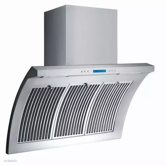 再就是欧式顶吸,十年前比较流行,现在也还有市场。拢烟吸力确实比不上侧吸,但胜在颜值高啊。很多家里是开放式厨房,也不经常爆炒的,都因为美观选了它。