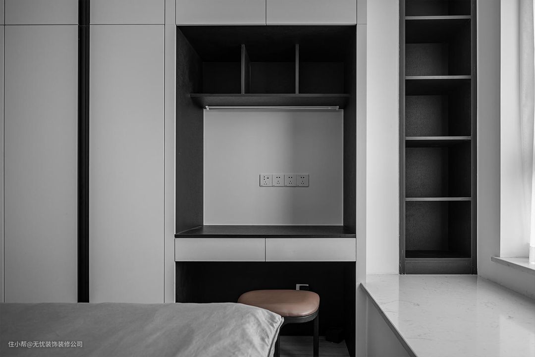 #卧室 #破格而饰的梳妆台,与整面衣柜形成张弛有度的量体造型,自带飘窗更添一处休闲。是为勇敢独特的女性而生,舒心在简繁之中自成一方天地,再挑剔的女士,也会在其中收获心跳。