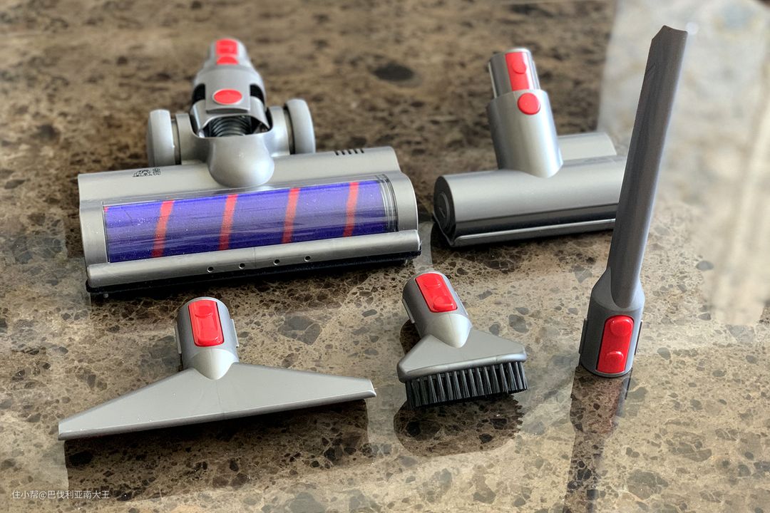 随机附带5个不同的刷头,可代替笤帚、抹布、鸡毛掸、扫床刷等,满足家中地面桌面、床上沙发、窗帘吊灯等多处清洁的需求。楼主尤其喜欢用那个电动除螨刷,强劲的吸力能吸出很多普通除螨仪吸不出的东西。