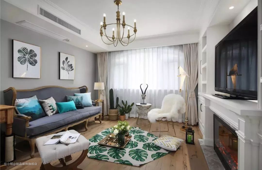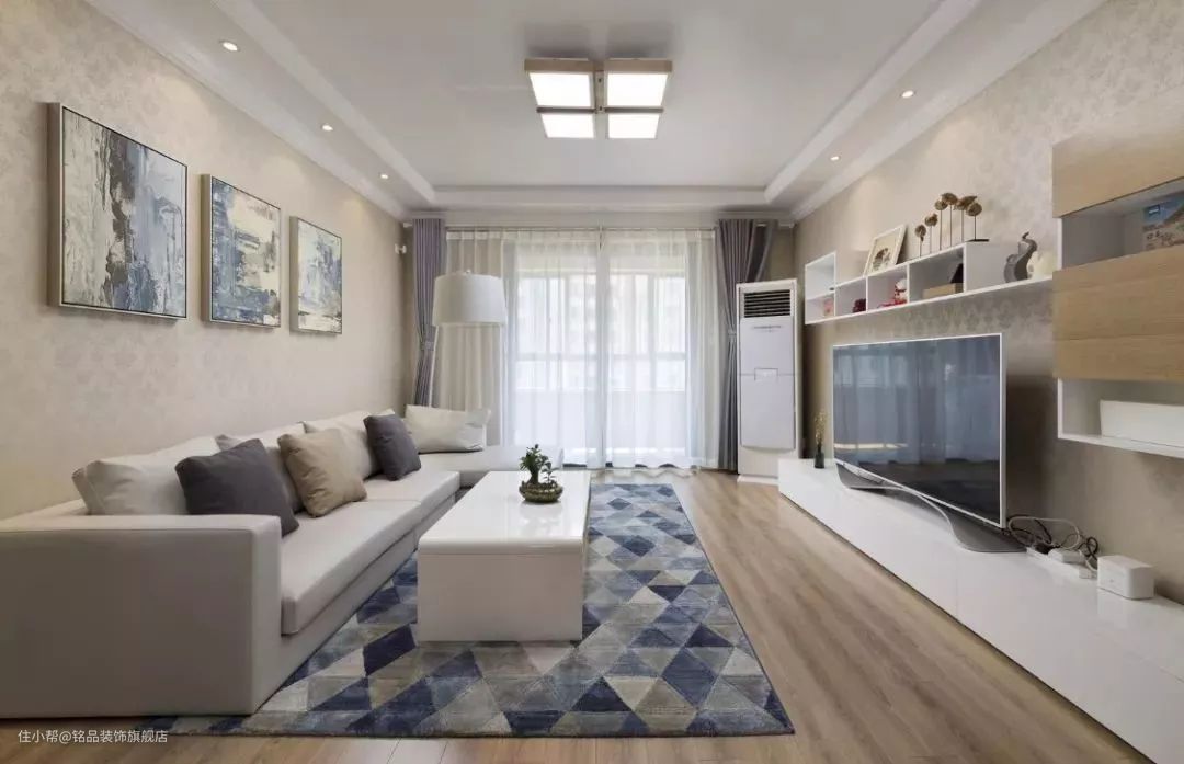 只需要简单的遮盖住空调、新风系统的主机和管道即可。石膏线可以放在吊顶的另一侧,装饰房子内的横梁,像上图这款就挺不错的,成为了电视背景墙的一部分。