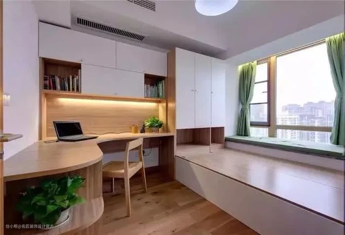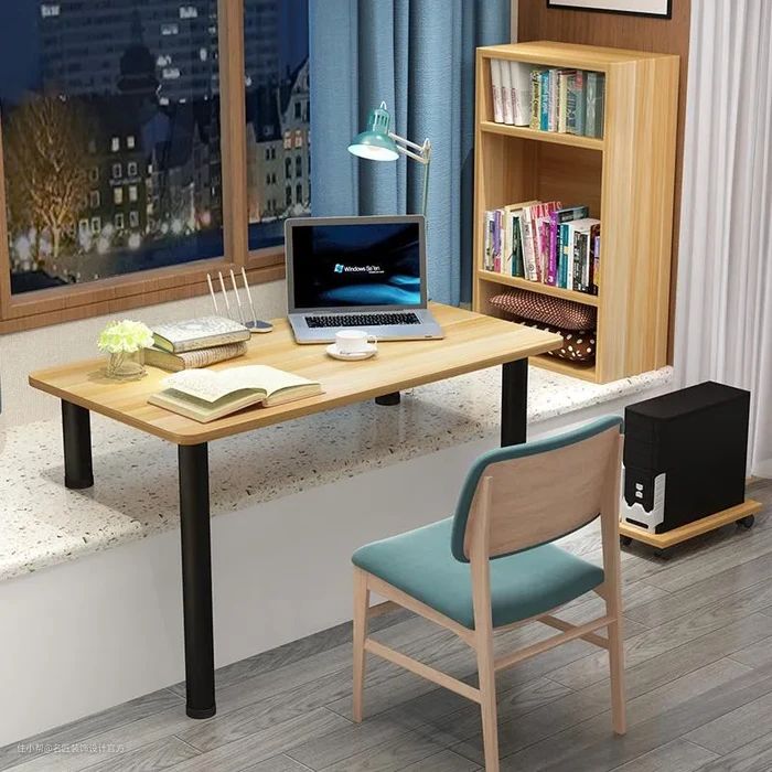 桌子相比椅子来说,最不和谐的一点就是腿没有地方放,网上美图悬空靠窗书桌也是定制的木地台,并不是飘窗,不过桌子也有很多样式。