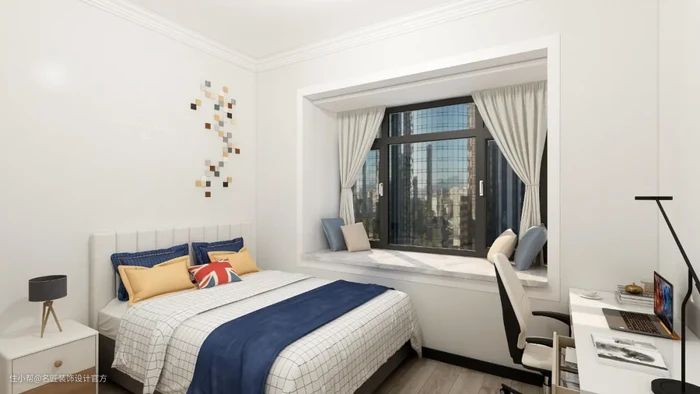 如果卧室的面积过小,把床贴着飘窗摆,1米8床变2米6,几个人横着躺竖着躺都行,又或者把飘窗的空间延伸出来,改造成榻榻米。