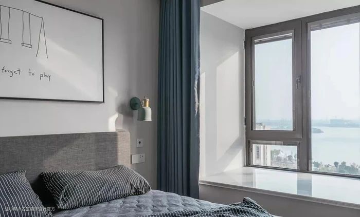 一般家庭都是选用白色纱帘或者百叶帘贴外窗,既可以保护隐私,又可以阻挡刺眼光线。不过外侧也要再做墙面落地的窗帘,拉上窗帘显得更简洁而且不会漏光,打造温馨睡眠环境。