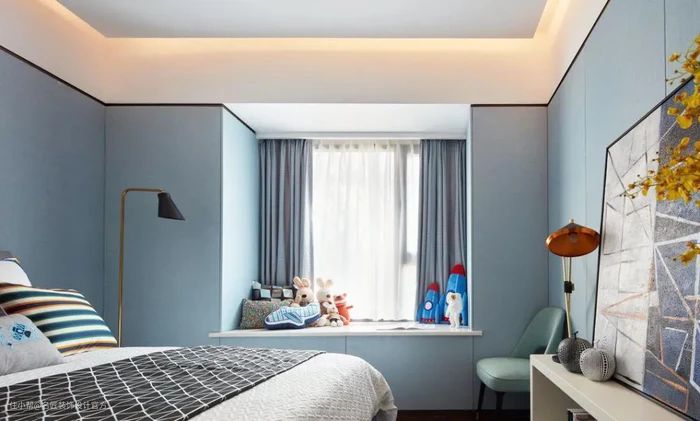 如果晚上经常用到飘窗区域的话,要考虑飘窗顶部的灯光处理,打造读书角的话,提前想好台灯的布置和走线,最大程度保护眼睛,光靠主卧吊灯是不行的。