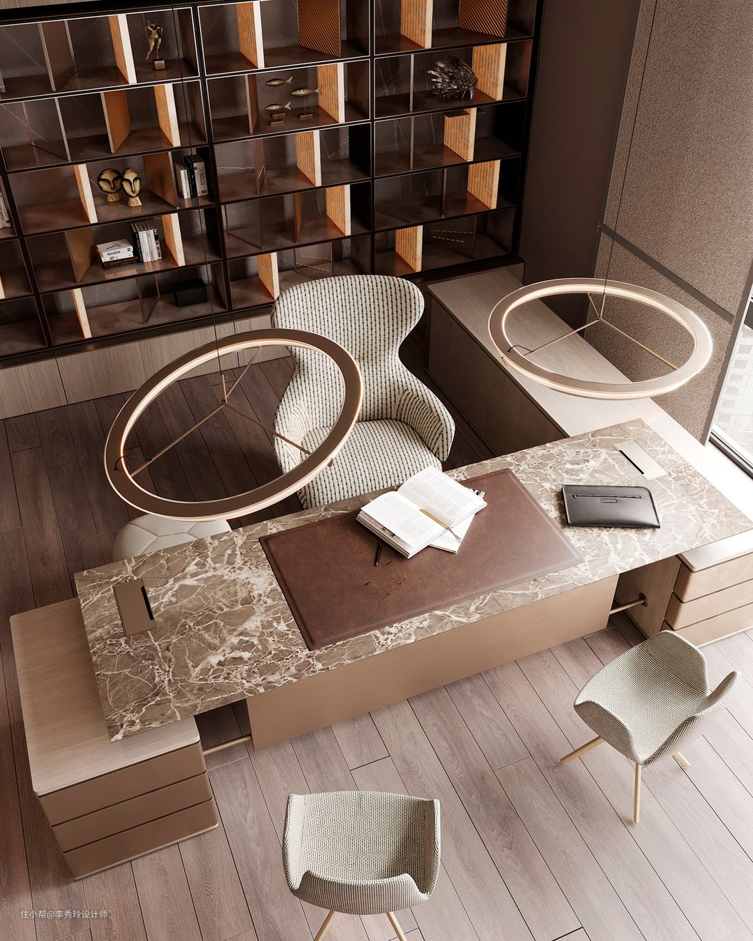 不过……从家庭互动性的角度来说,独立书房略略有点欠缺。怎么办呢?开放式书房了解一下!