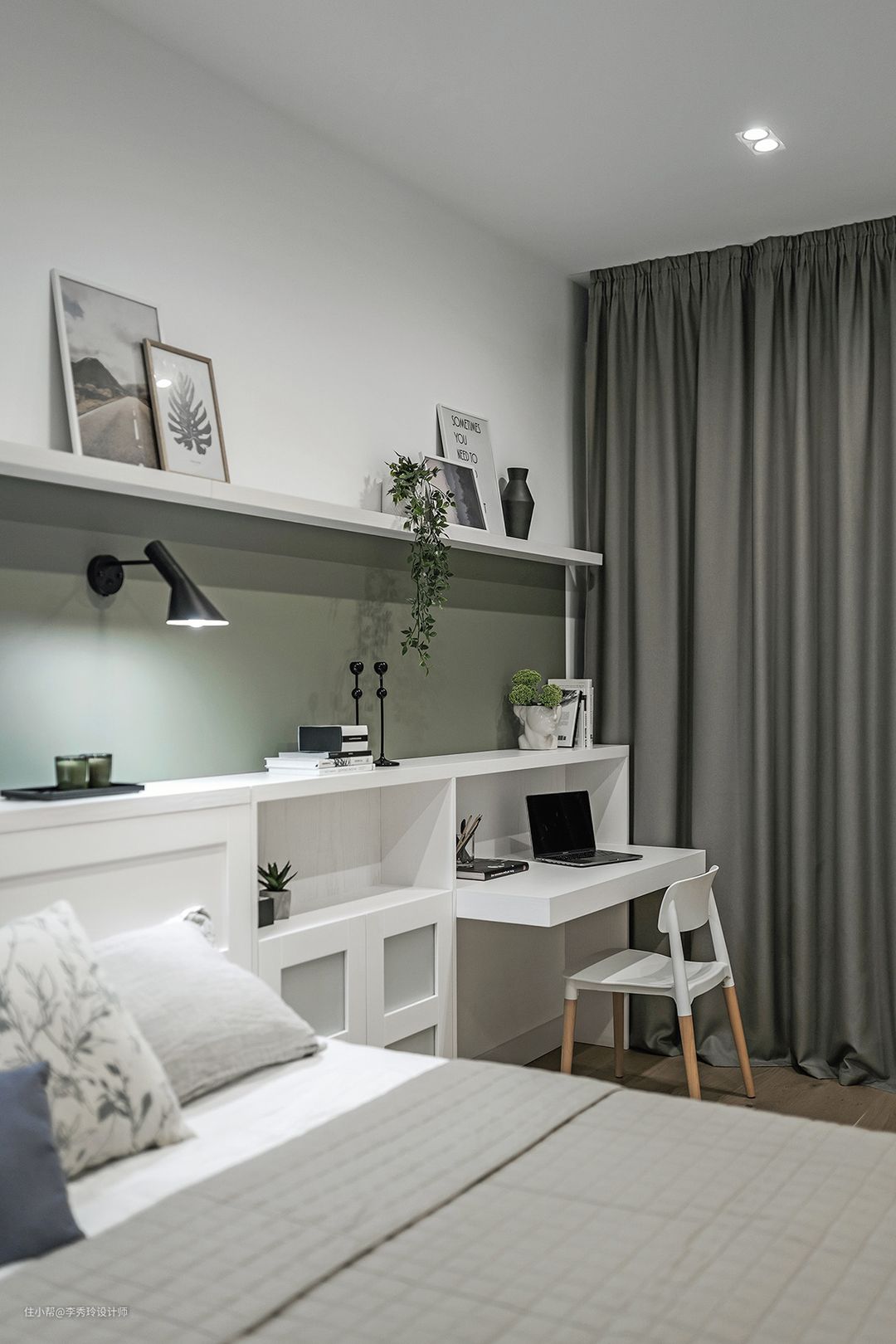 也可以将书桌结合床头一体式设计。整体性更强,还特别省空间,绝对是卧室的首选。