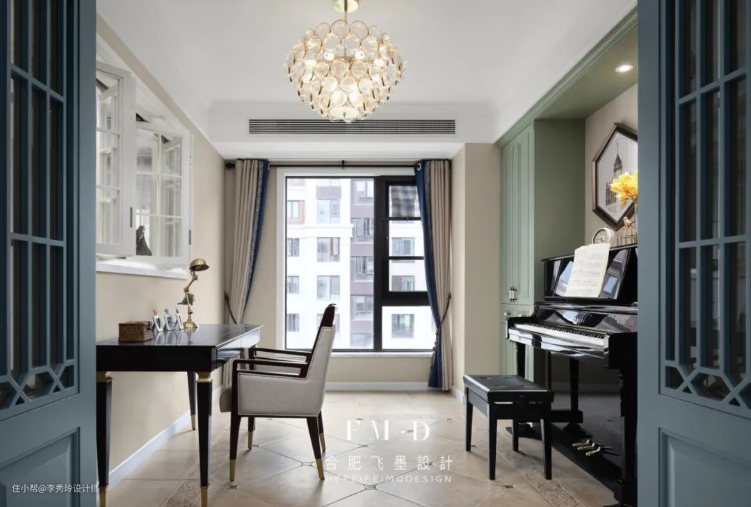那么,独立书房如何实现呢?简单,选择一个独立房间即可。至于位置,既可以偏执一隅。【绿城玫瑰园】这家,一家四口居住,选择紧邻主卧的一个独立房间作为书房。