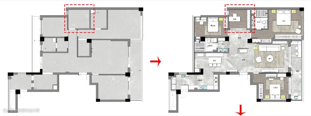 “一般儿童房哪有这么大空间,还能分出一大块给书房?”若卧室或儿童房的面积不那么大,咱们可以……
