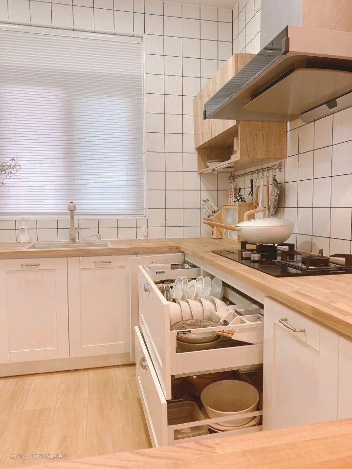 这次改造不仅改变了外观,也更注重厨房的收纳功能,毕竟也要每天做饭,实力和外观一定要兼顾呀,之前定制橱柜,自带的不锈钢拉篮,装完就后悔了。