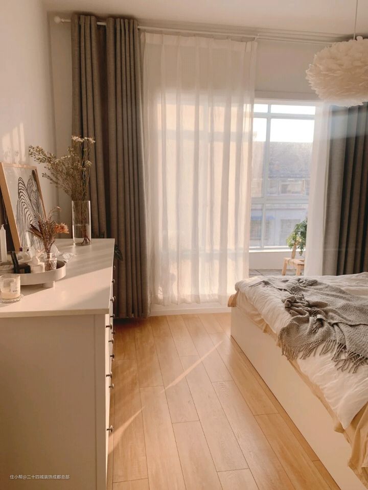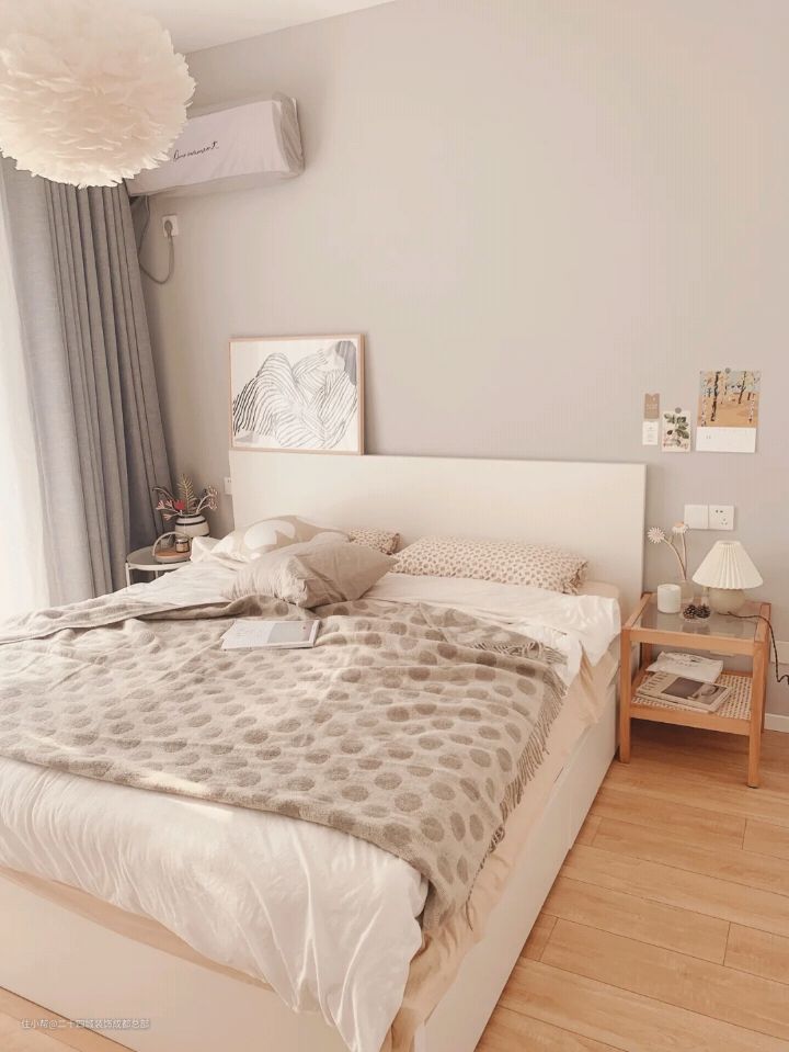 卧室墙面只有床头一面是灰色刷了立邦太空漫步,光线好的房间颜色会浅一些,床尾是斗柜超能装️一些零碎物品,内衣袜子、纸巾统统塞得下。