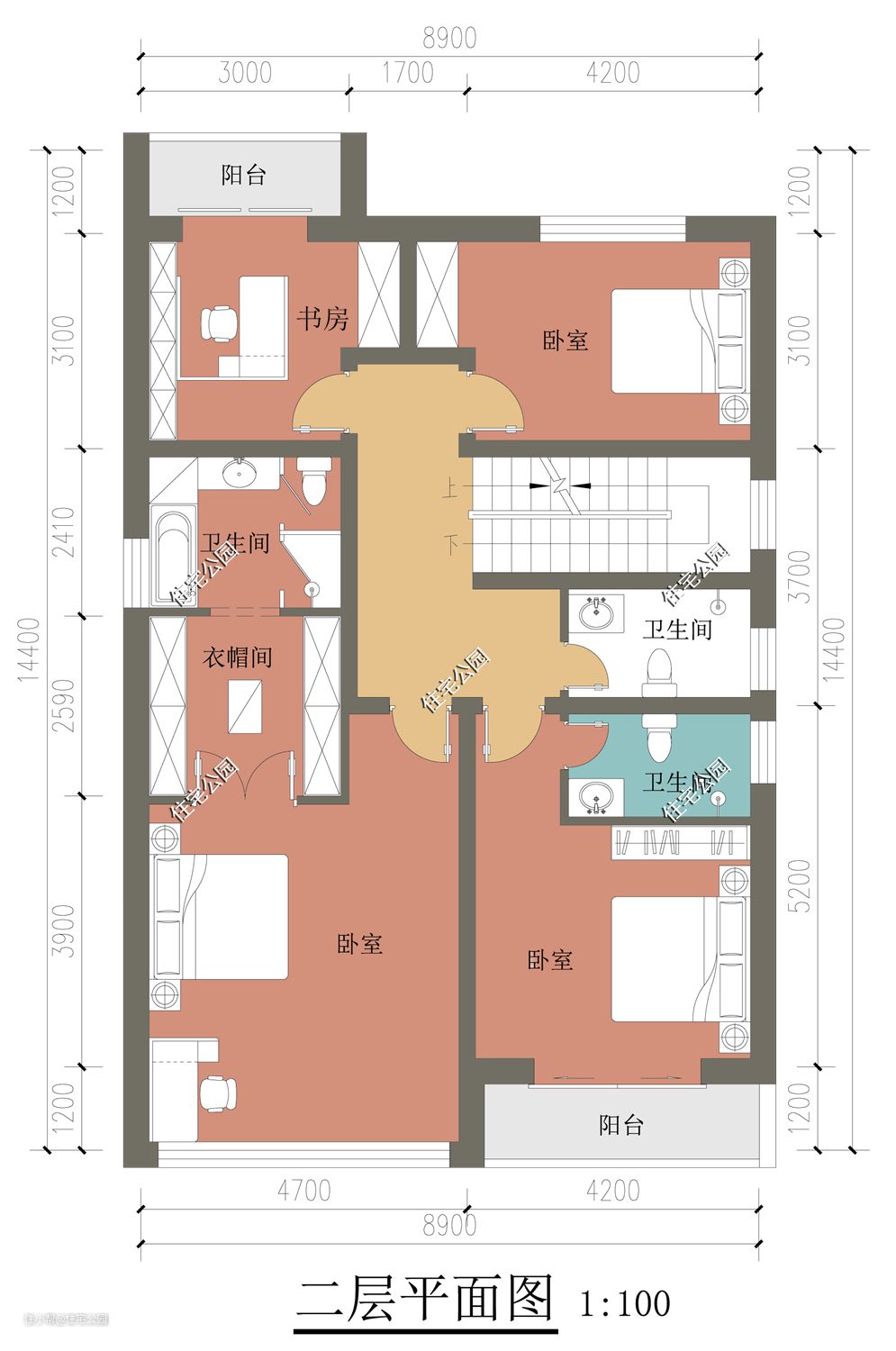 二层南北均设有卧室,南卧采光好通风强,设计成套房的形式,更能博得家人的喜爱。