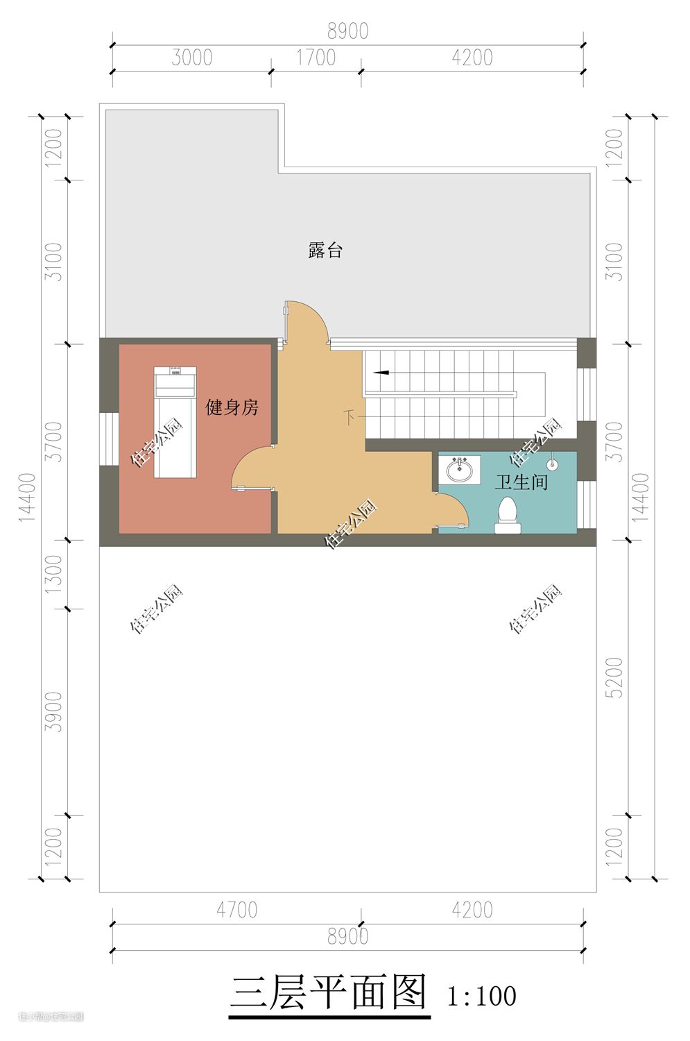占地尺寸:8.9m*14.4m