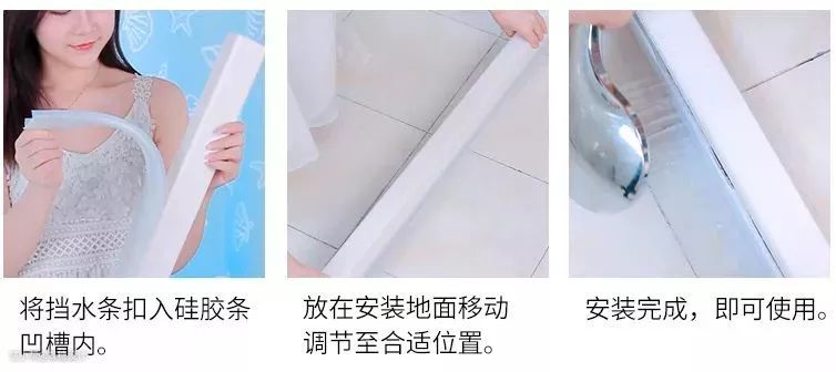 可以装修时候就装上,也可以在淘宝上购买PVC材质的挡水条,请卖家裁成需要的长度即可。长条、曲线、U型和钻石型都可以选择。