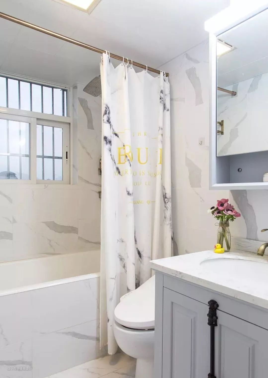 浴帘的空间灵活性很强,非常适用于做不了干湿分区的小卫生间,而且价格不高,可以随意更换~