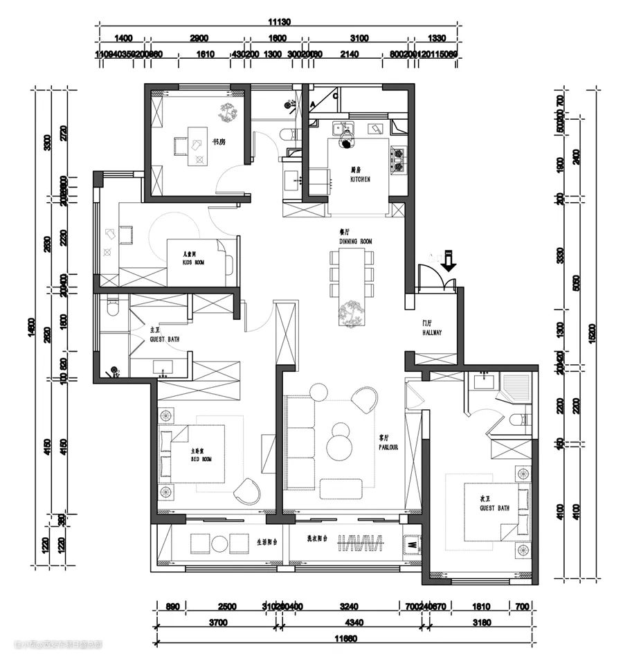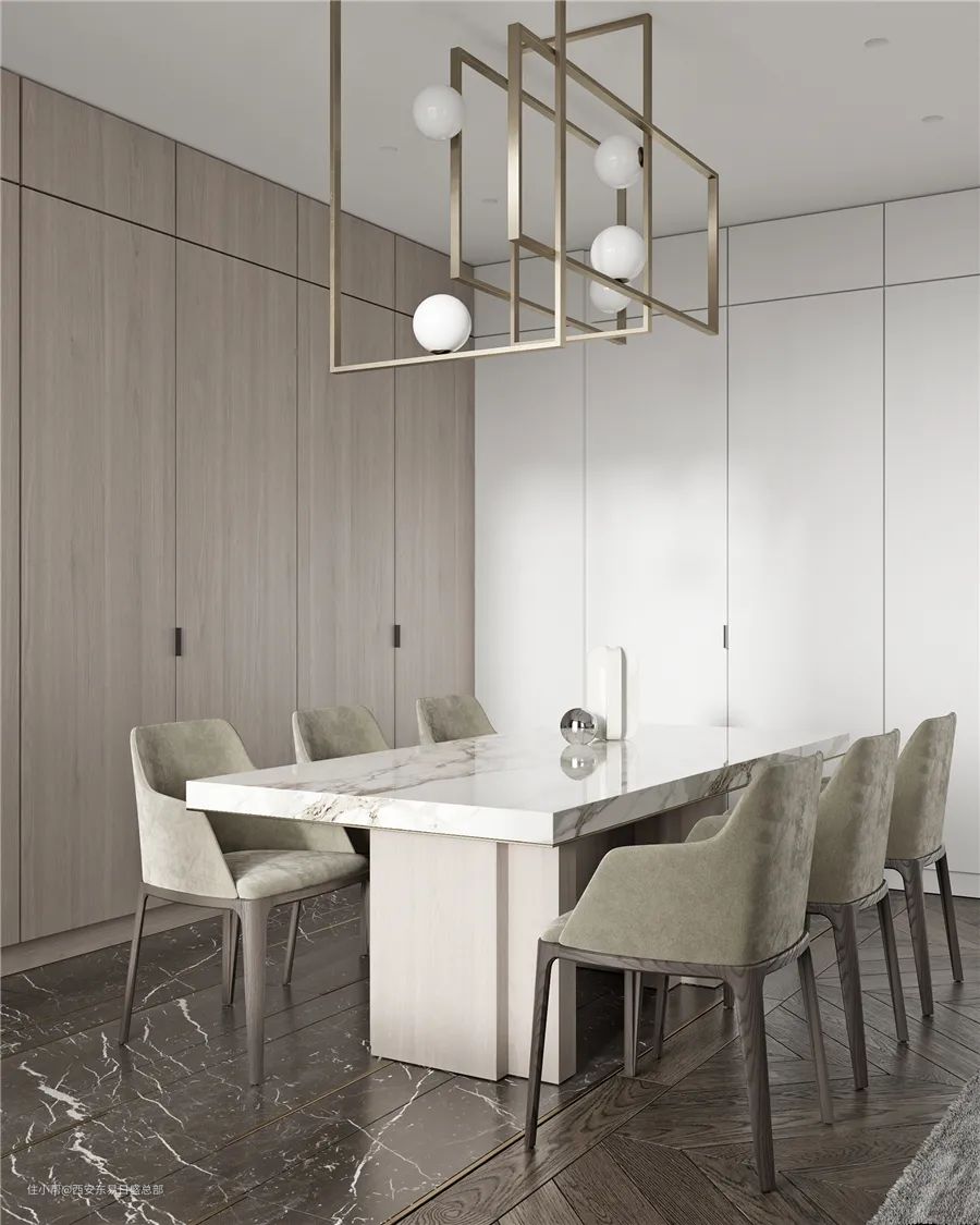 ②餐厅与客厅的区分十分的生硬,让两个区域之间没有存在联系感.