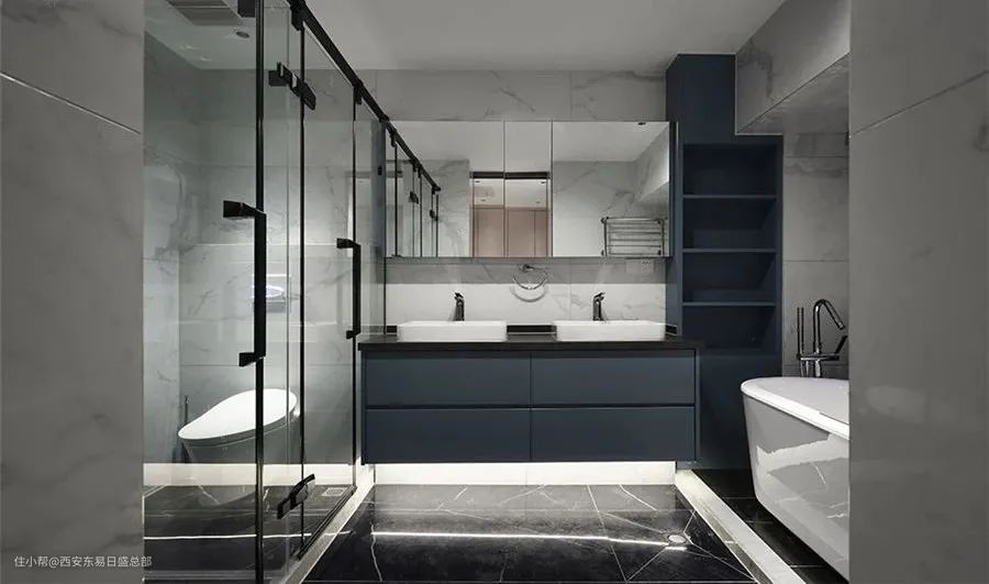 ②主卫墙体拆除,增加储物功能,同时节省空间的浪费让主卫内的功能更加齐全;