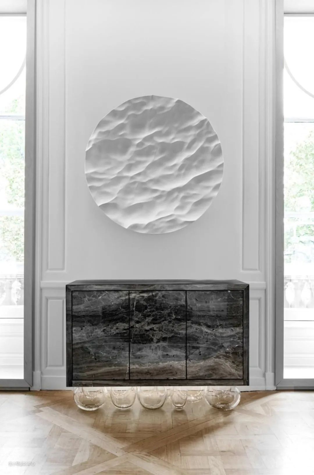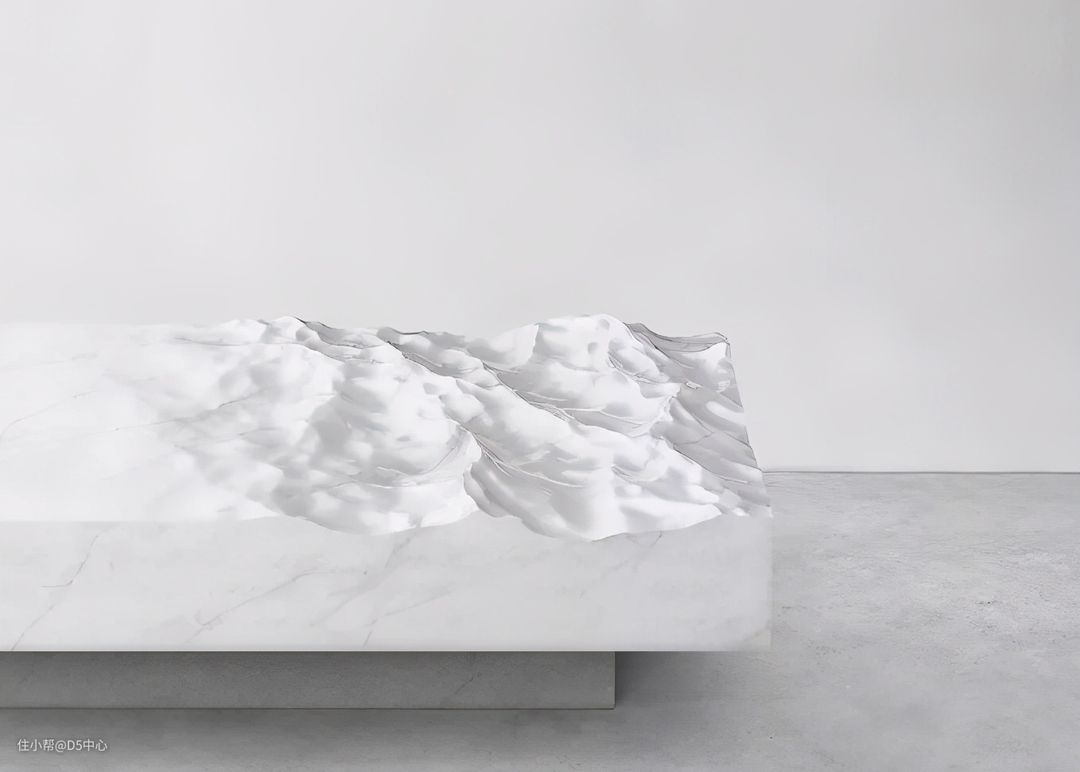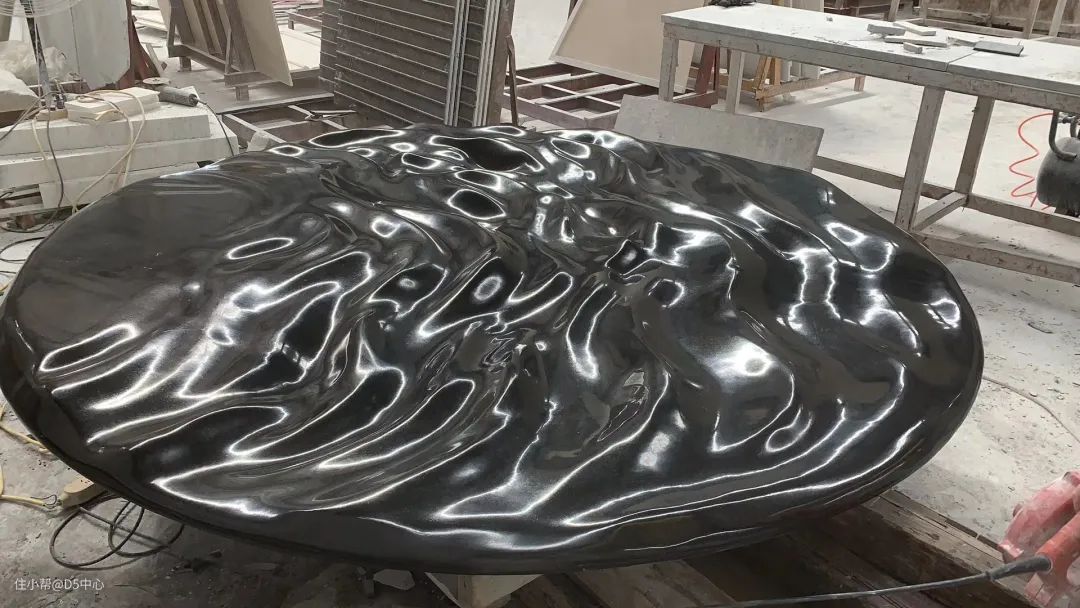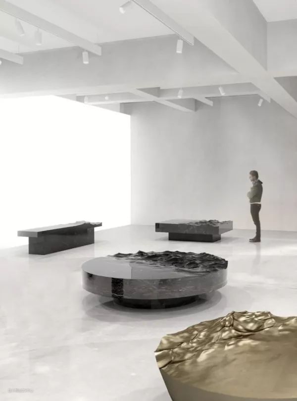 液态大理石这种艺术效果,将新时代的3D特效软件、机器雕刻与传统手工打磨结合起来,模糊了设计与艺术之间的分界。