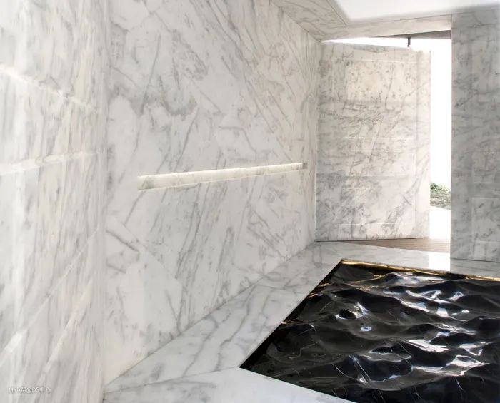 设计师通过大理石本身的花纹,再加上细节的处理,让这块原本只是简单石头的大理石,变成一片闪闪发光的海~