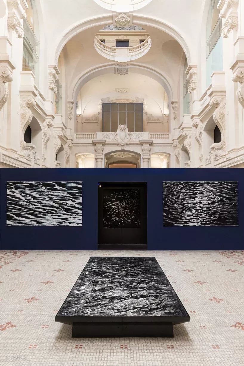 这样浪漫的装置艺术同样也涌进了巴黎装饰艺术博物馆,该装置约4米长,1.7米宽,宽敞的画廊展示空间中墙壁与地板均为浅色,与暗黑色化石般的装置形成鲜明对比。