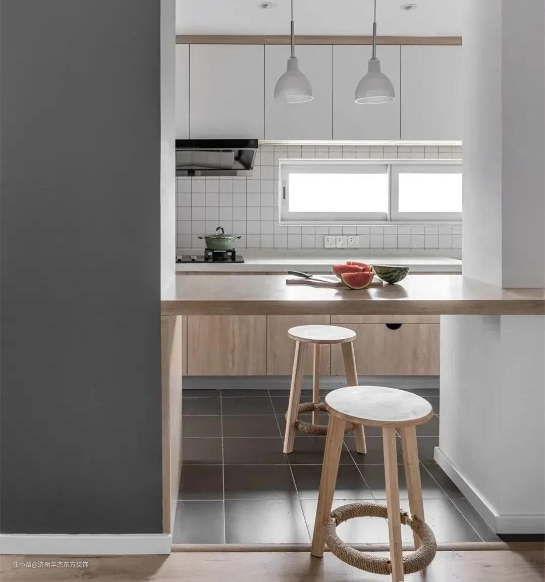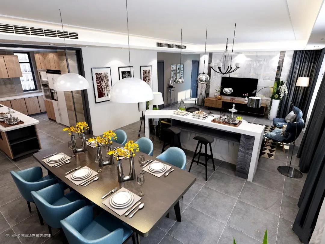 方形餐桌除了可以独立放置外,还可以连接岛台,这种比较适合面积较大的餐厅或者开放式厨房,整体性很强,高级大气。