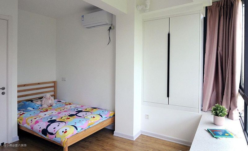 姐姐的衣柜架在飘窗上,节约室内的地面空间。