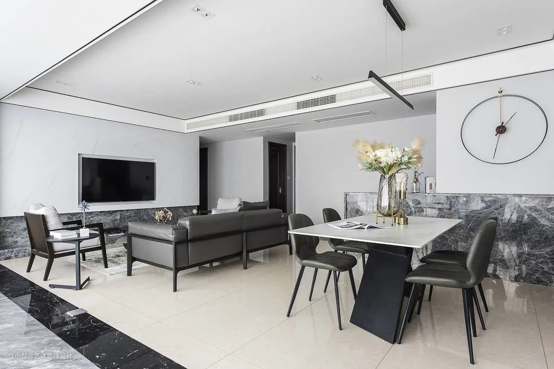 餐厅灯光主要是照餐桌和餐桌周围。餐桌区域是无主灯设计唯一建议装主灯的区域,一般建议购买有一定遮光角或者能够聚光的吊灯,一方面考虑到餐桌配合吊灯提高颜值,一方面的话有聚光的光源打到食物上拍照啥的都会好看很多。吊灯高度在离桌子65cm左右,如果没确定桌子高度的吊灯超低点可以在130~160cm(不要怕撞头,餐桌放上去就没事)。
