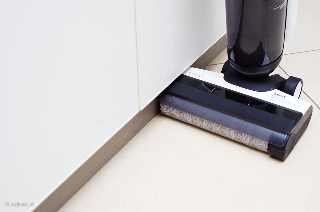 基本上能贴墙打扫,滚刷厚度和普通无线吸尘器差不多,橱柜底部也没有问题。