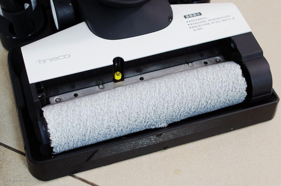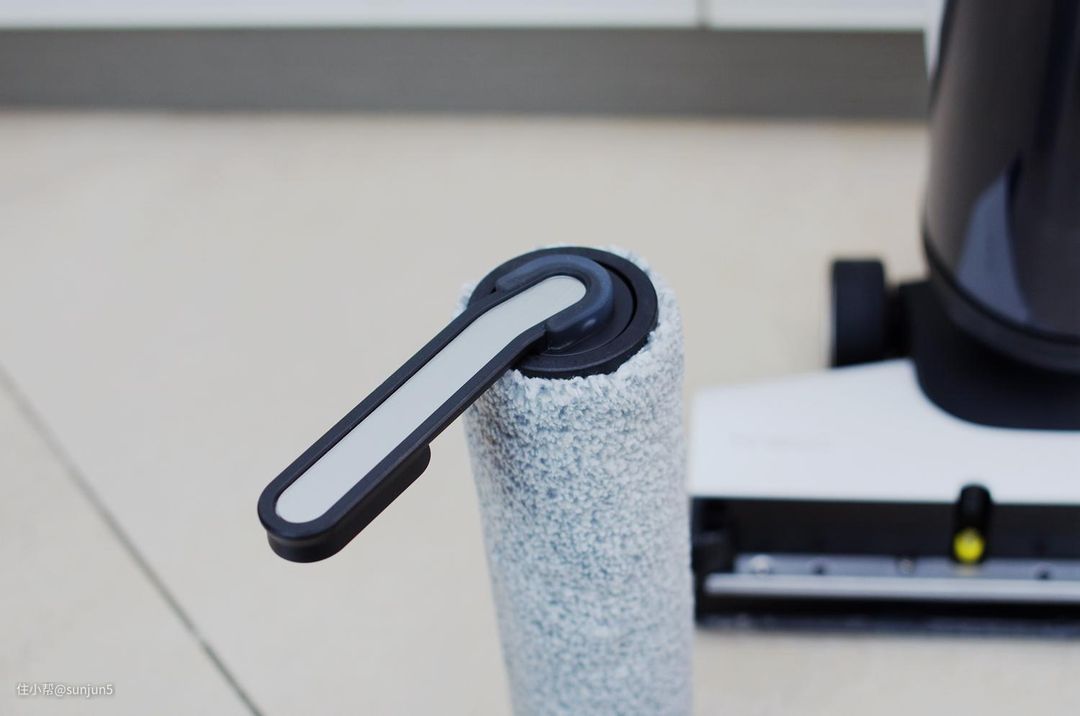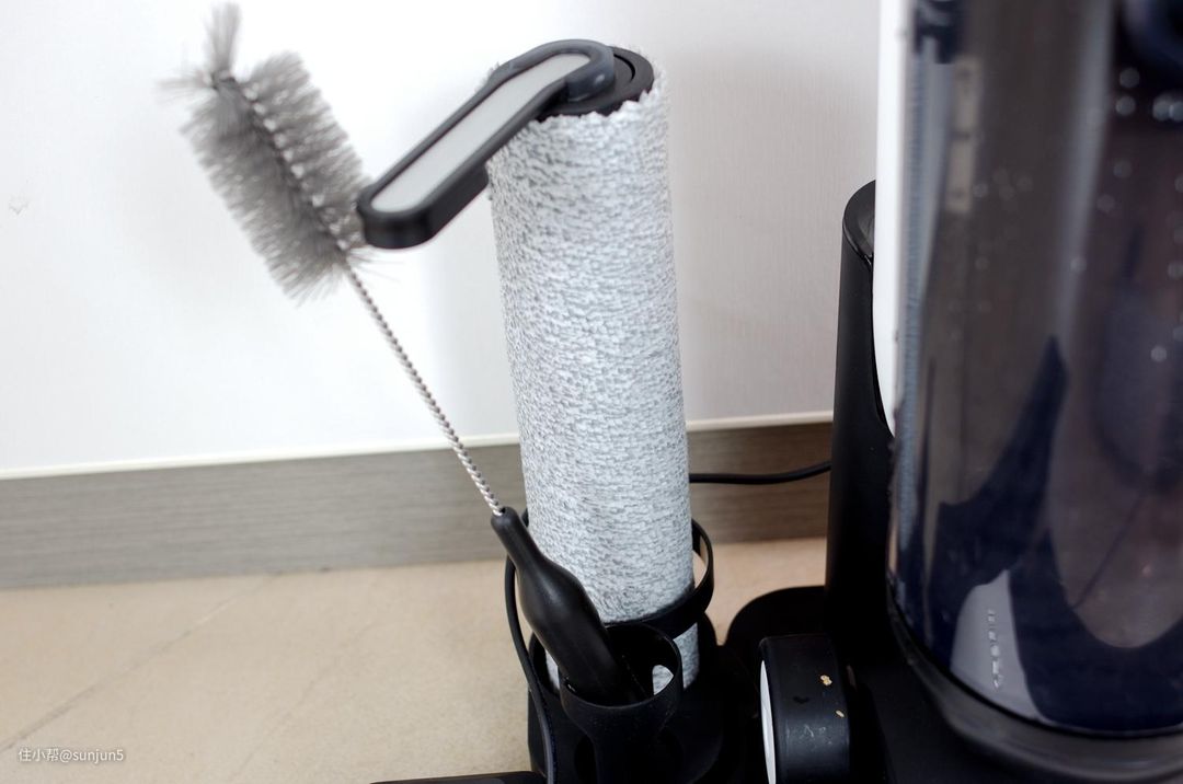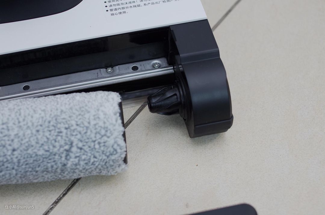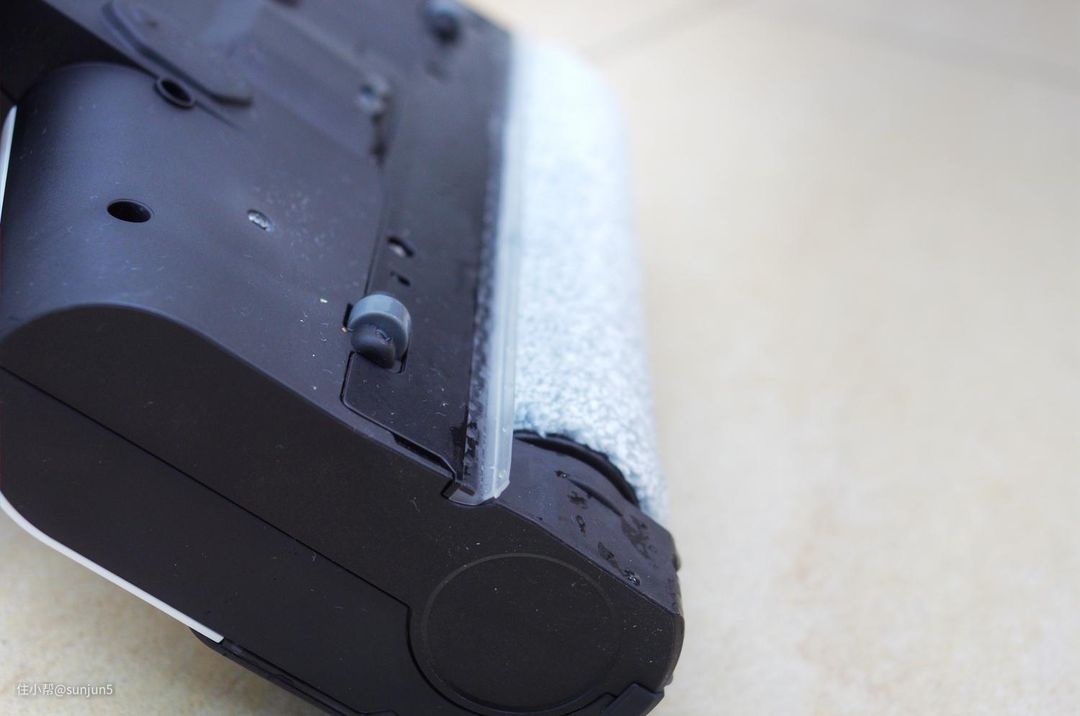 第二个是滚刷采用了偏置设计,使得滚刷工作的时候可以紧贴墙角,与前代和其他洗地机相比,大幅减少了工作盲区。