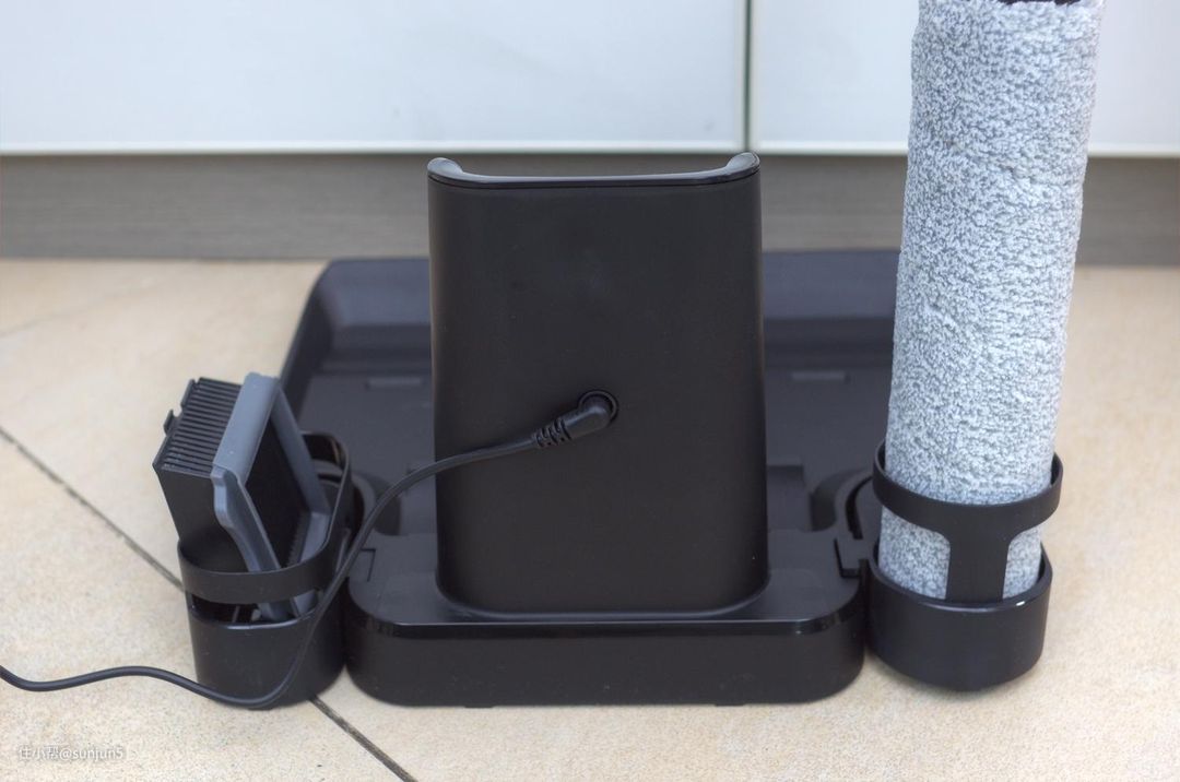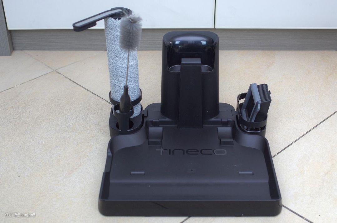 底座也是座充,清洁刷什么的备件都能收纳在底座上,配件一抬手就能拿到,很方便。