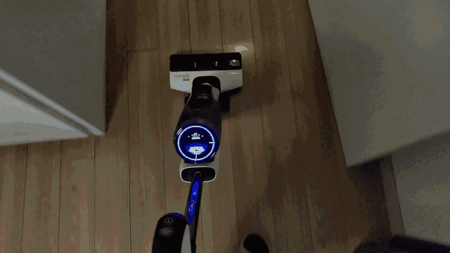 在打扫完成后,按动手柄上的“自清洁”按键,就能自动清理滚轮和机器内部通道了。相比一代,二代自清洁也做了升级,用电解水制备的除菌液来清洗滚刷,有效避免了异味产生。