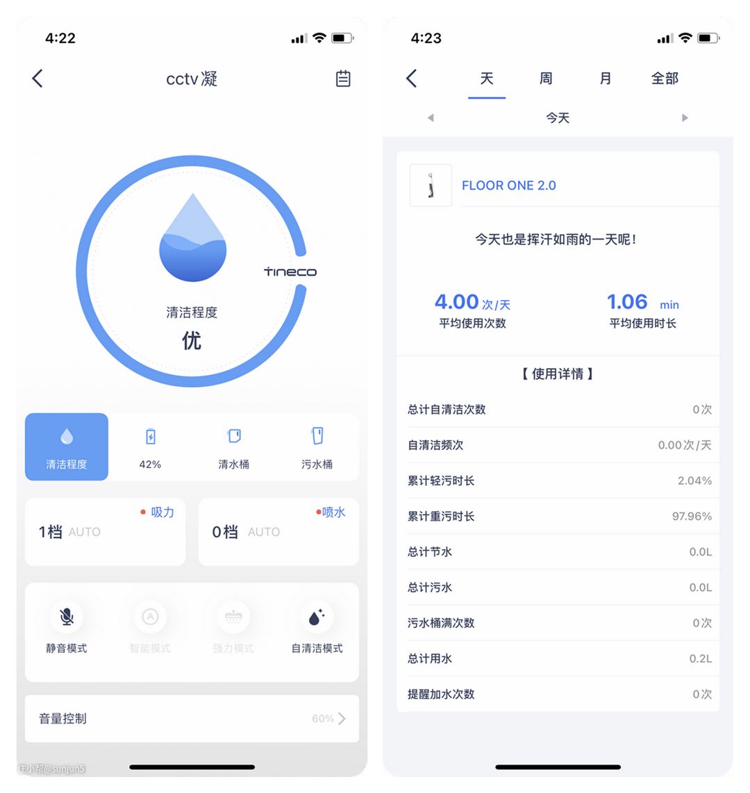 清洁之后APP里能看见各种数据。