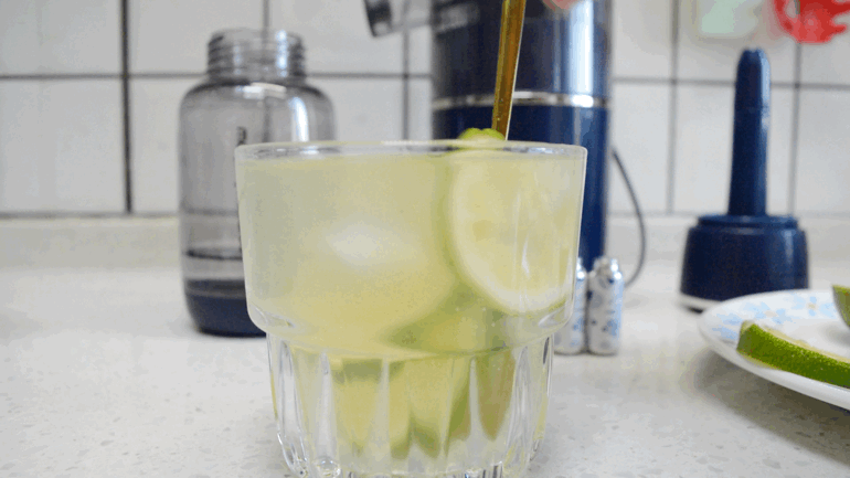 绿茶、青柠、糖浆(可不加)、气泡水