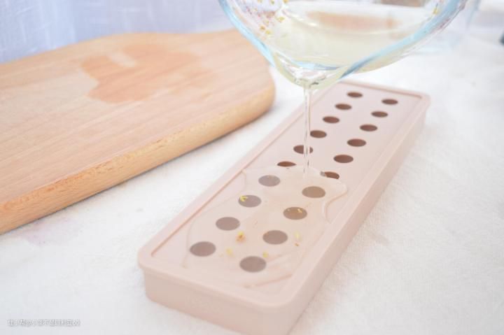 1、用糖桂花和蜂蜜水混合,放入冰格中冷冻。