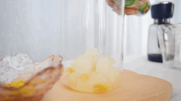 2、在果汁中加入气泡胶囊,做成气泡果汁。