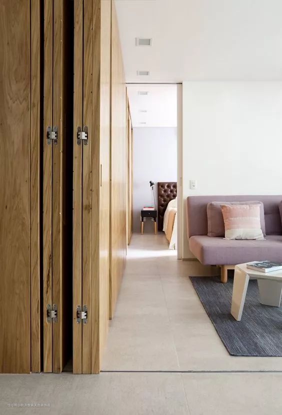 门可以设计的和柜子融为一体,这样基本上达到了很好的隐藏效果。一般在衣帽柜和储物柜这样的地方,最适合做隐形门了~