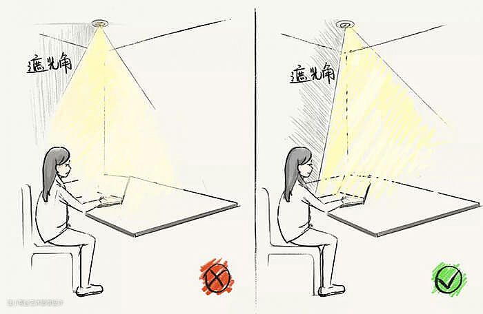 区别在于,两个灯具的遮光角大小不同。坐在灯具的遮光角区域内,看不到灯具里面的光源,没有眩光,也就不刺眼,俗话说“不是太亮了,而是太直接”。