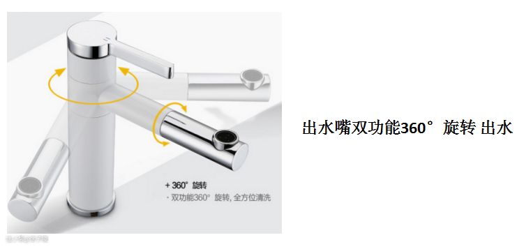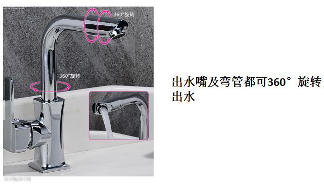 3.双360°旋转面盆龙头,出水嘴及弯管都可以360°旋转出水