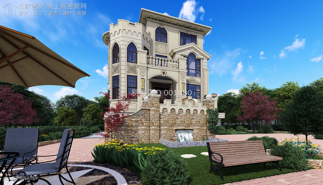 四层豪华欧式别墅设计图,带车库带花园