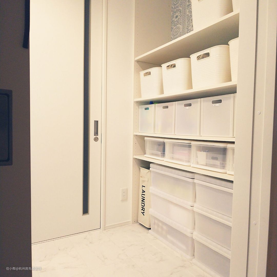日本人很喜欢做一个家务间,放置洗衣机和浴室柜,在这个小空间里面,也不浪费一点空间。在洗衣机周围做搁架或晾衣杆,夹缝柜、收纳柜等。方便洗完衣服在这里折叠,晾晒。