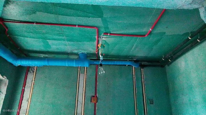 5、这一点大家一定要记住,厨卫水电无论是走顶还是走地,电管一定要在水管上方,千万不能弄颠倒了,那样的后果是很严重的。