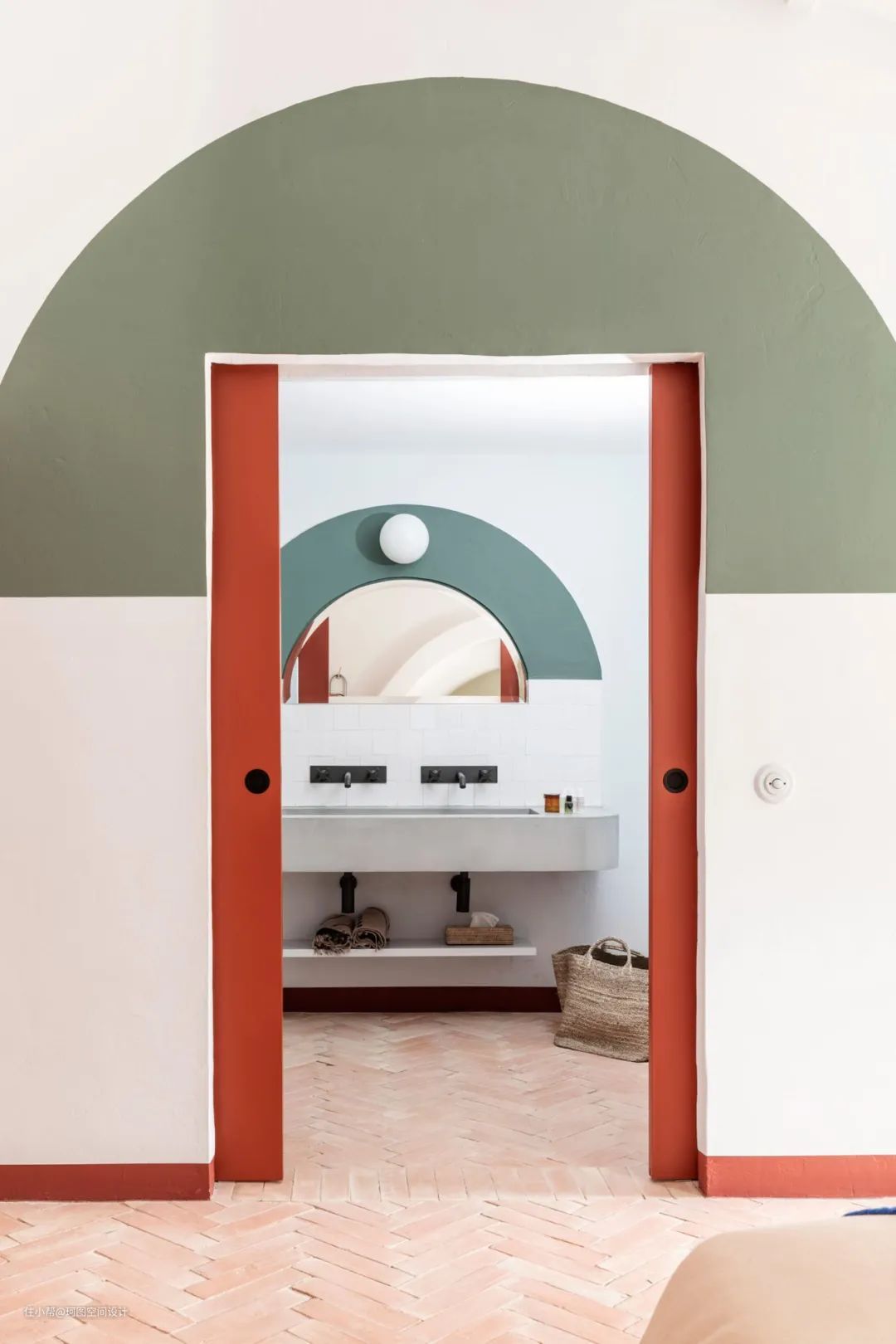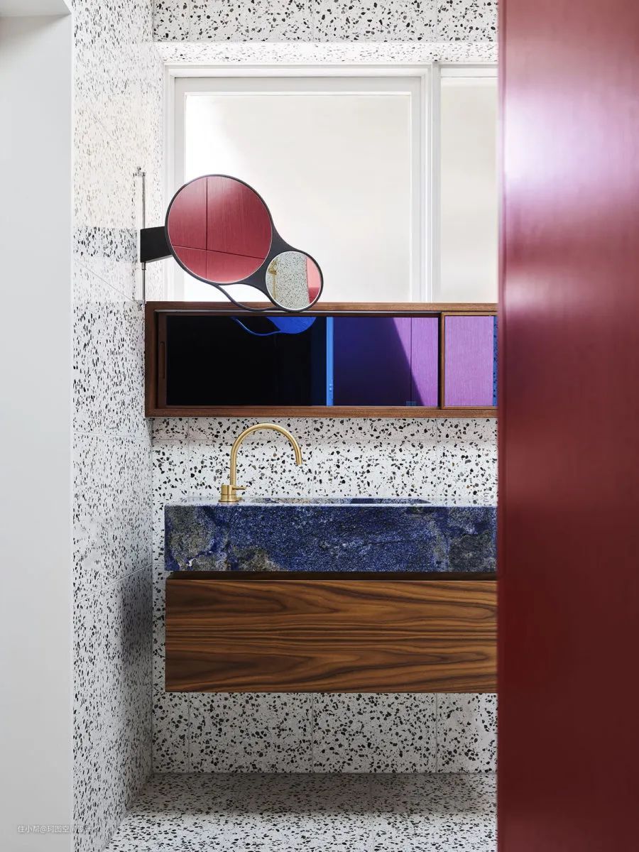 - 红绿色也是更经典的撞色之一,暖色调的洗手盆中和了撞色带来的冲击感。