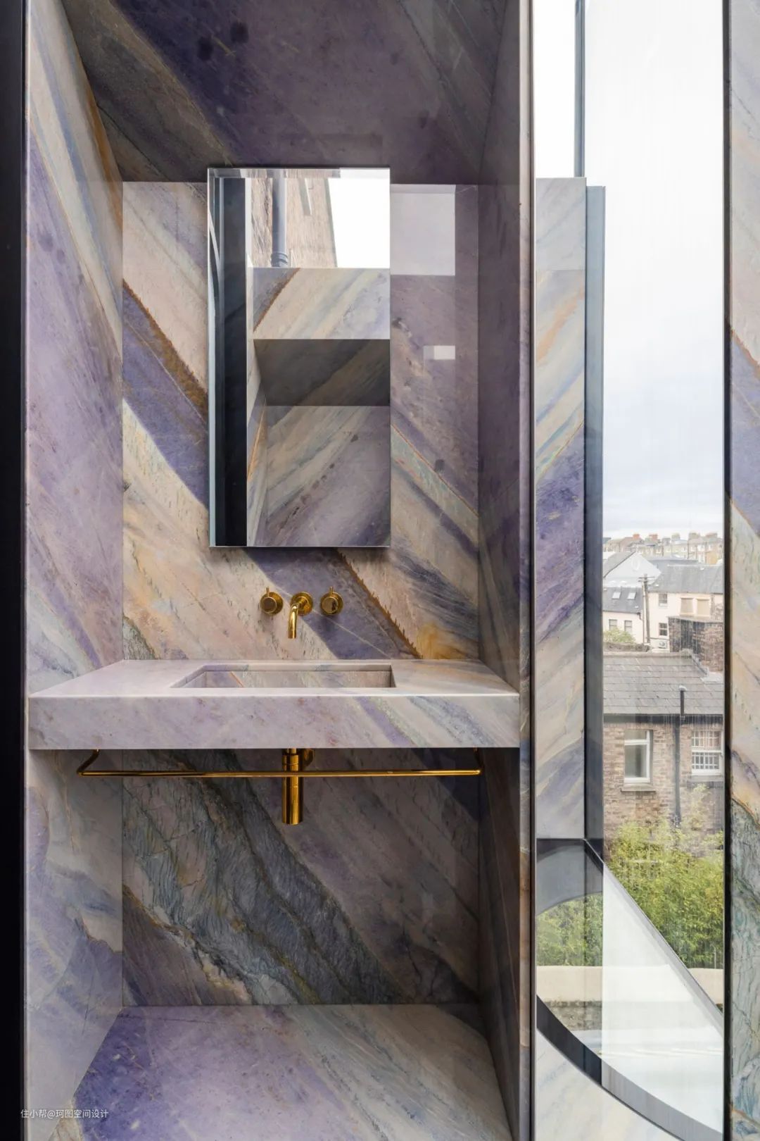 - 这款洗手台与上面那款有些相似,但大理石的色调更偏向于紫色,很是独特。