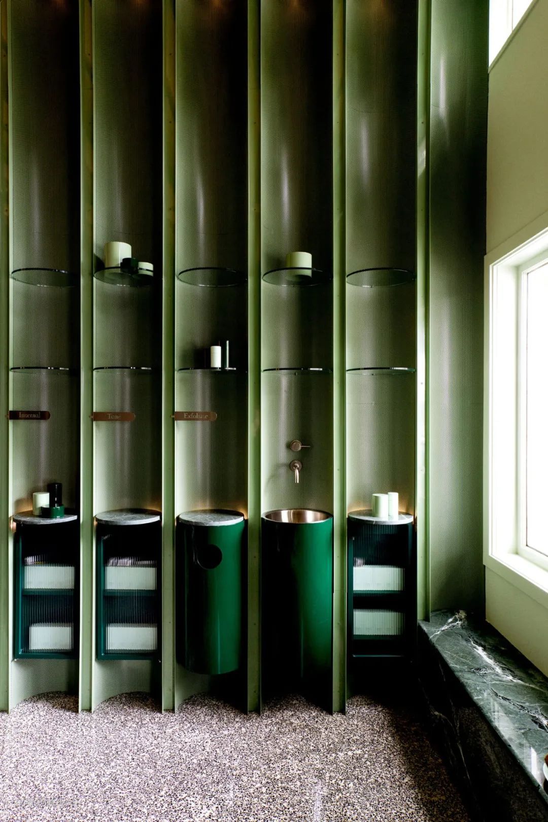 - 这个洗手台位于温哥华的一间餐厅内,设计灵感来源于竹子,既形象又清新。