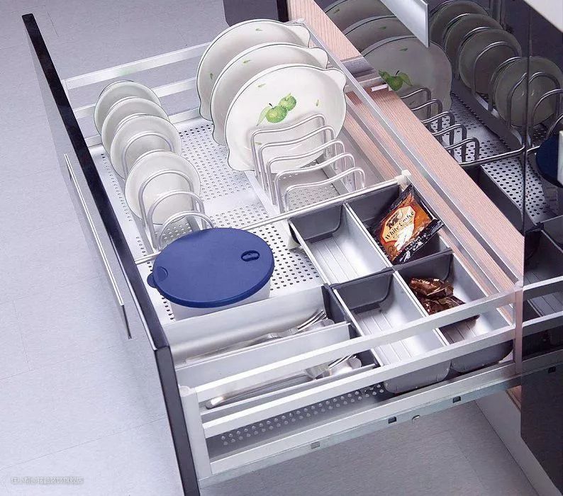 2、在操作时,要将抽屉和碗柜拉篮尽量往下装,这样不但可以装更多的东西,而且还方便使用。此外,要将拉手装在中间,若装高了,抽拉时使不上劲。